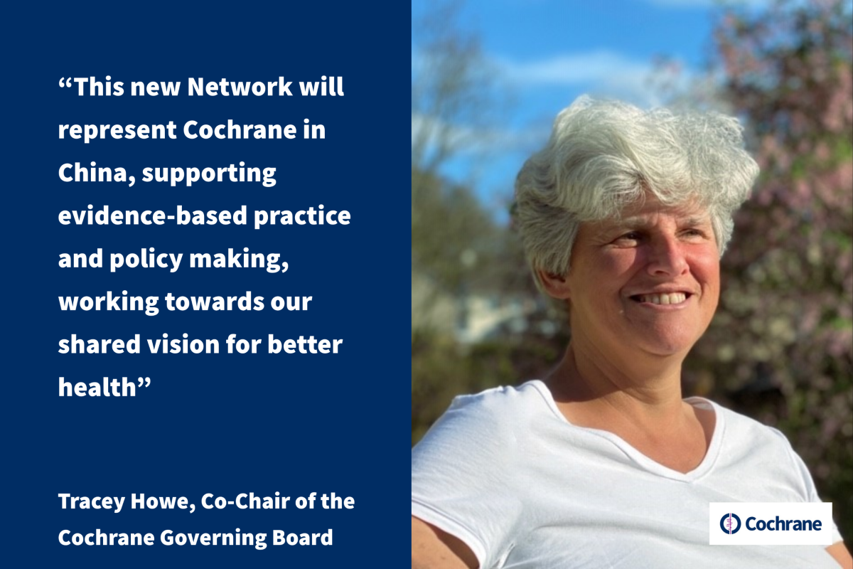 Tracey Howe, Co-Chair of the Cochrane Governing Board adds: “Over the past two decades Cochrane has taken a lead in advocating for evidence-informed healthcare, and now has Cochrane Groups in 43 countries, and more than 100,000 members worldwide. This new Network will represent Cochrane in China, supporting evidence-based practice and policy making, working towards our shared vision for better health.”
