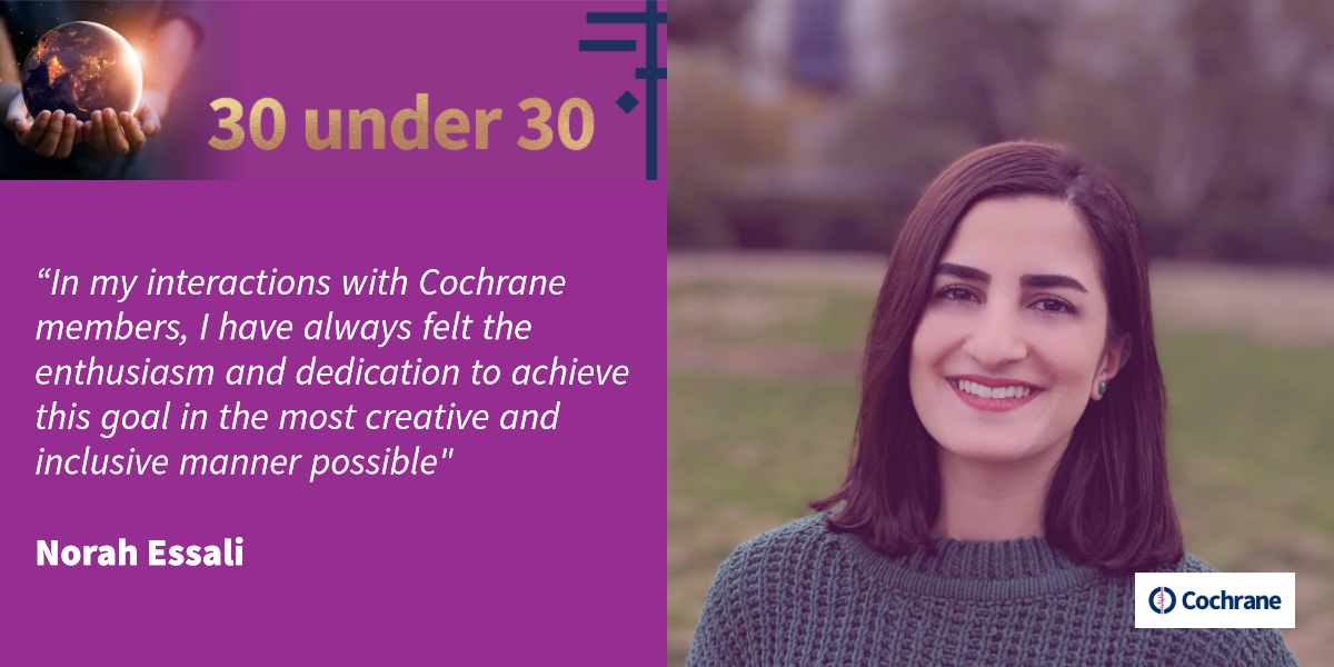 Many of our contributors are young people working with Cochrane as researchers, citizen scientists, medical students, and volunteer language translators and we want to recognize the work of this generation of contributors as part of this series called, Cochrane’s “30 under 30."