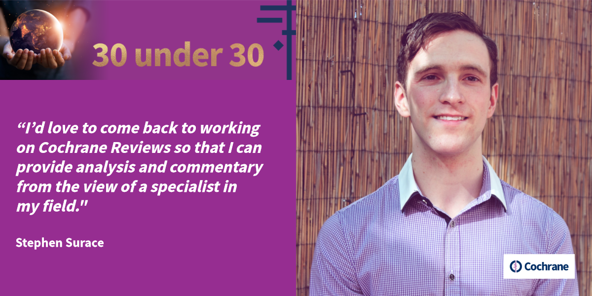 Many of our contributors are young people working with Cochrane as researchers, citizen scientists, medical students, and volunteer language translators and we want to recognize the work of this generation of contributors as part of this series called, Cochrane’s “30 under 30."
