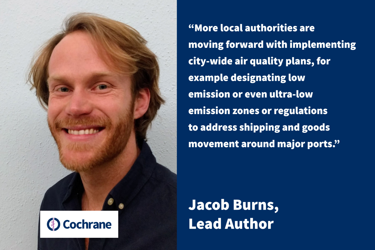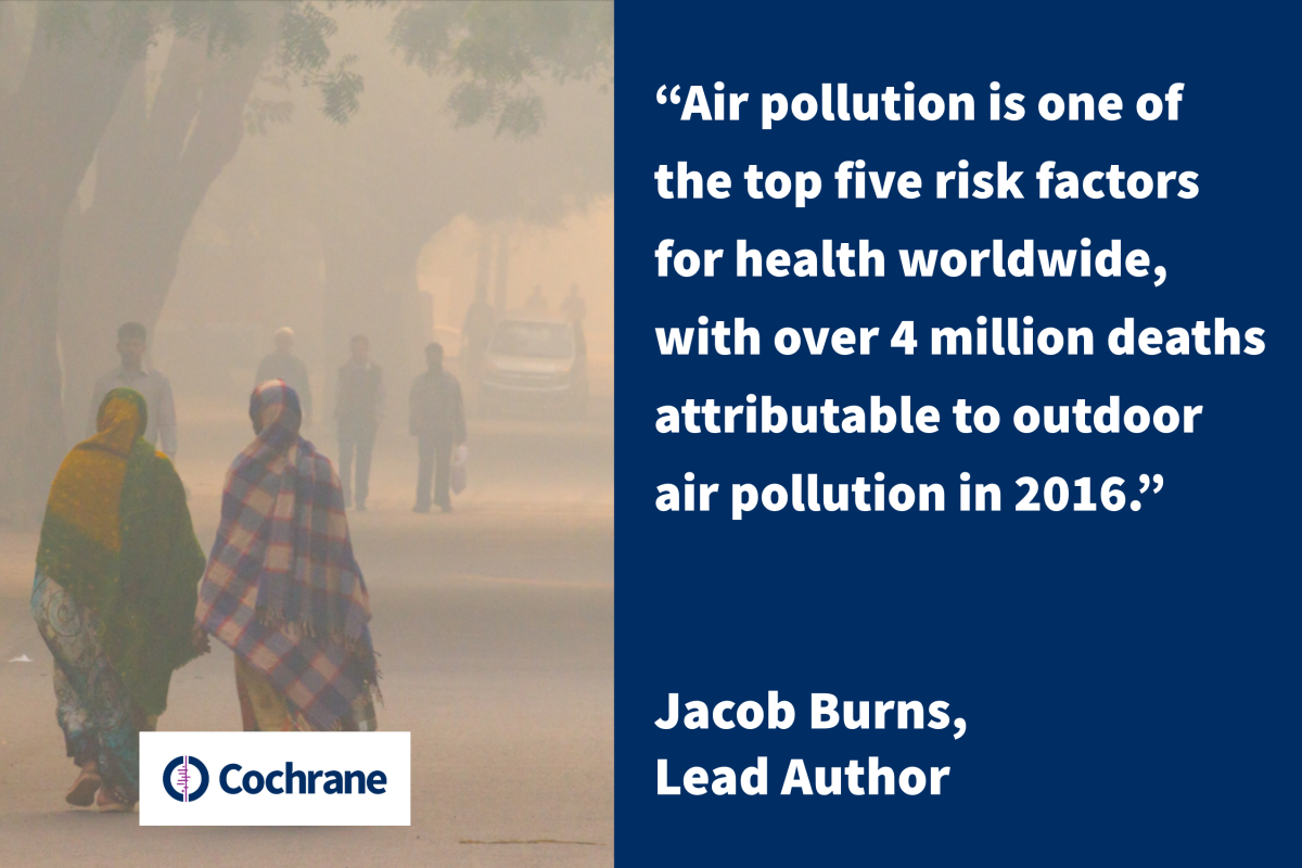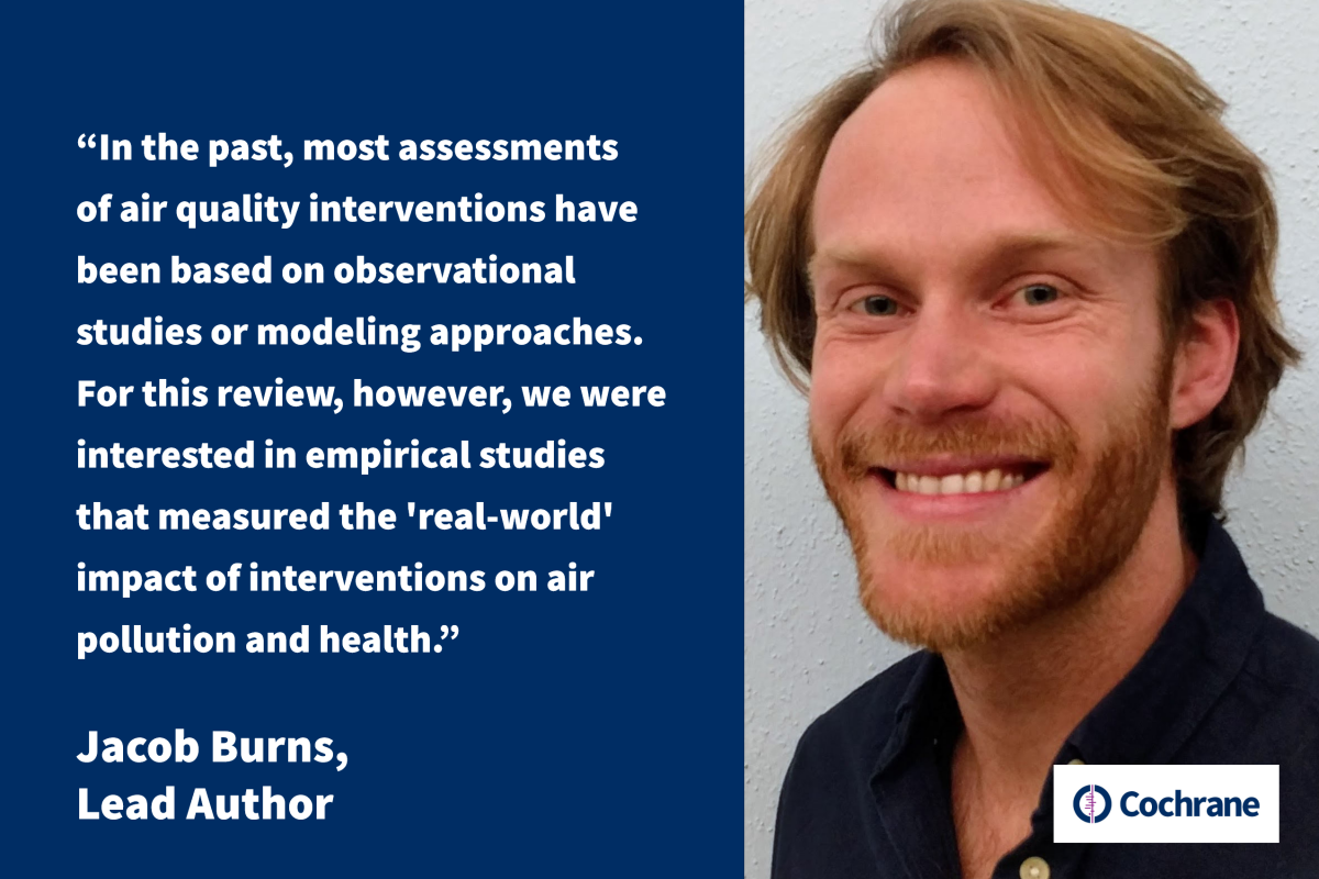 Air pollution is one of the top five risk factors for health worldwide. In this interview Jacob Burns lead author of a recent Cochrane Review on this topic tells us about the newly published Cochrane Review which set out to assess the effects of interventions on air pollution and health.