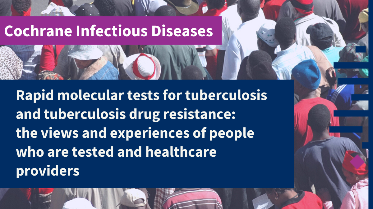 Engel N, Ochodo EA, Karanja PW, Schmidt BM, Janssen R, Steingart KR, et al. Rapid molecular tests for tuberculosis and tuberculosis drug resistance: a qualitative evidence synthesis. Cochrane Database of Systematic Reviews 2022, Issue 4. Art. No.: CD014877. DOI: 10.1002/14651858.CD014877.pub2