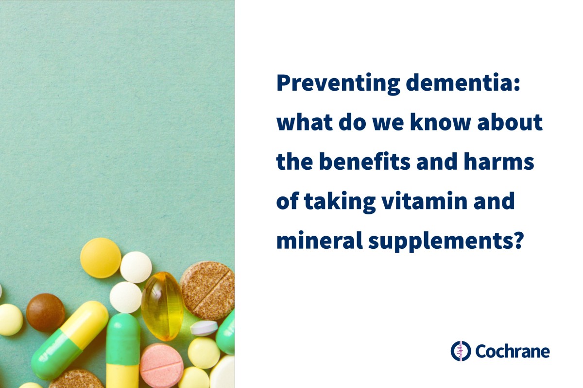 Two Cochrane Reviews bring together the best available evidence on the safety and effectiveness of vitamin and mineral supplements for maintaining cognitive function and preventing dementia. In theory, these could help, as vitamins and minerals have many functions in our central nervous systems which may help keep the brain healthy and our minds working well. But is there robust evidence to inform our choices? Let’s see.