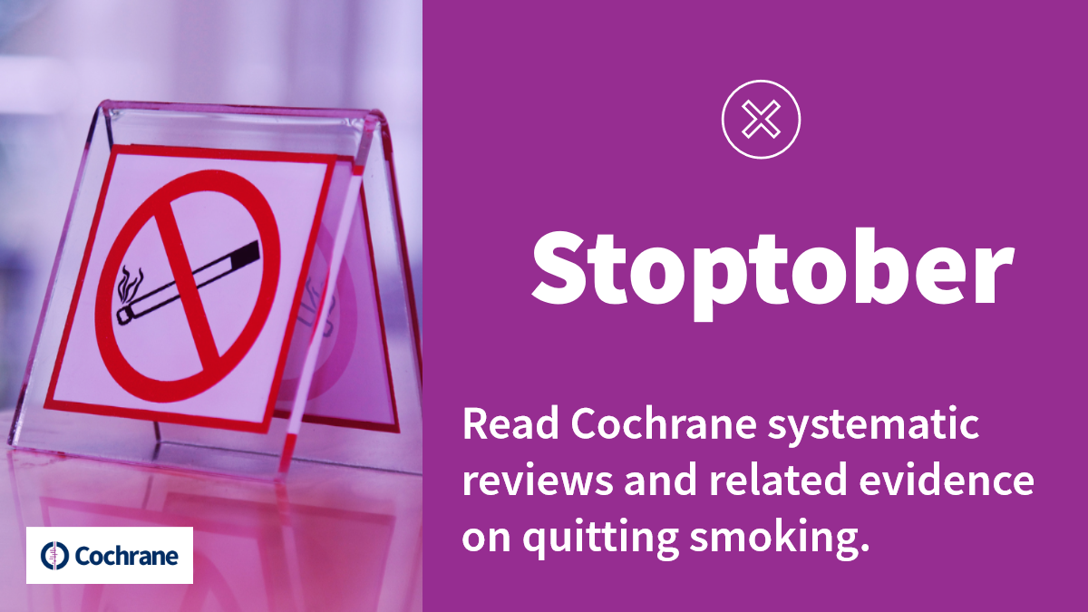 Stoptober began in 2012 as an event  to encouraging people to quit smoking for good. Since then it has become an annual 28-day mass quitting attempt, offering resources and support for anyone trying to become smoke-free. It's an excellent to put the spotlight on the latest Cochrane evidence on quitting smoking.